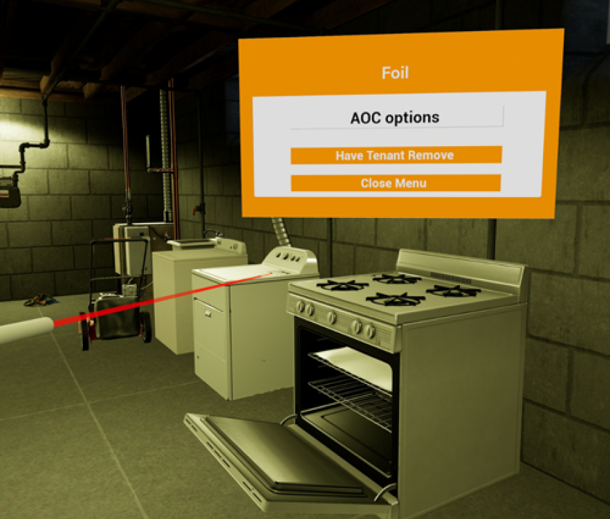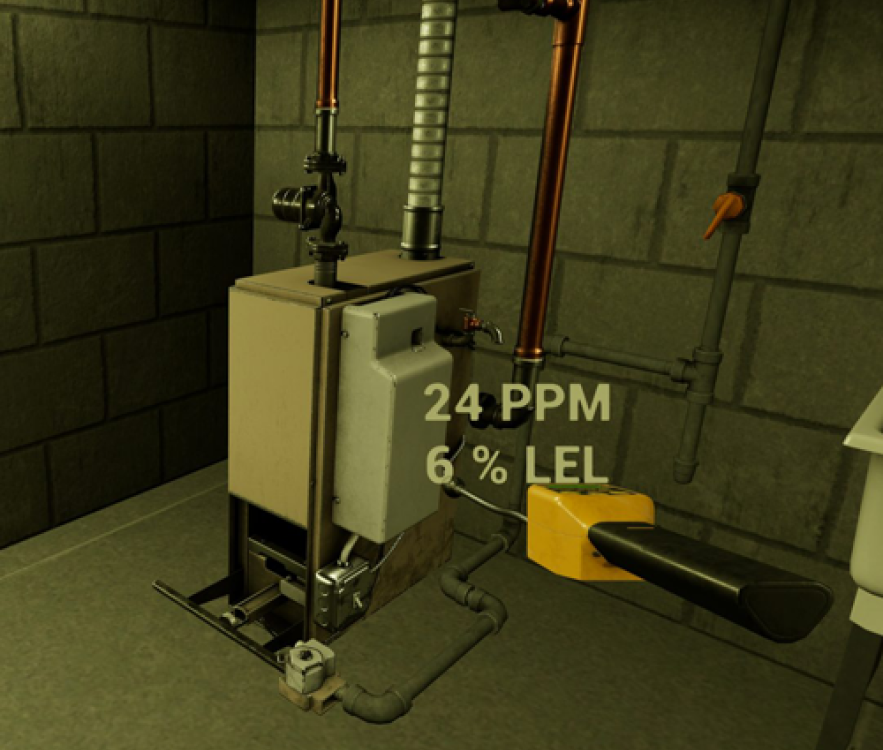 Basically, you put on a VR headset and pick up the controllers, and get instantly immersed in a 360-degree virtual world that looks, feels, and behaves like the real one. As a trainee, your task is to inspect multiple appliances, including central air/heating units, gas meters and pipes, ovens, vents, etc. Investigate the problem and potential hazards, document the process, solve issues and report findings.
