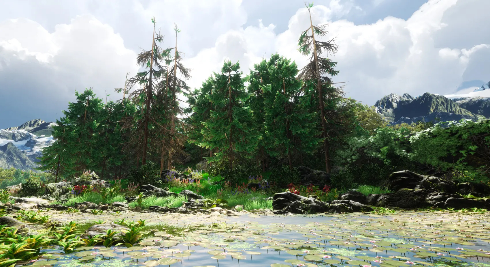 Pre-rendered 360° video creation. While developers worked on the service, a dedicated artist worked on creation of the two non-interactive relaxing CG video experiences which also become the first content pieces available through the service. Both experiences were created using Unreal Engine 4 and rendered using only in-house computing powers.