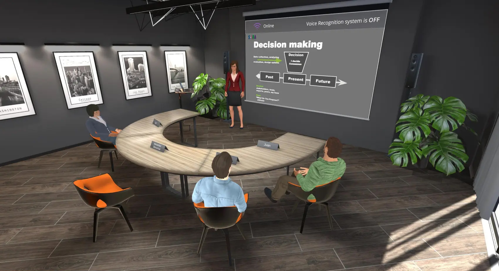 We paid extra attention to the visual part of VIRTRACON™, our talented artists created a pleasant-looking classroom, leaned on the client’s preferences. Our animation team made several full-body animation sets for NPCs using mocap technology; the facial animation was created using blendshapes and lipsync.
